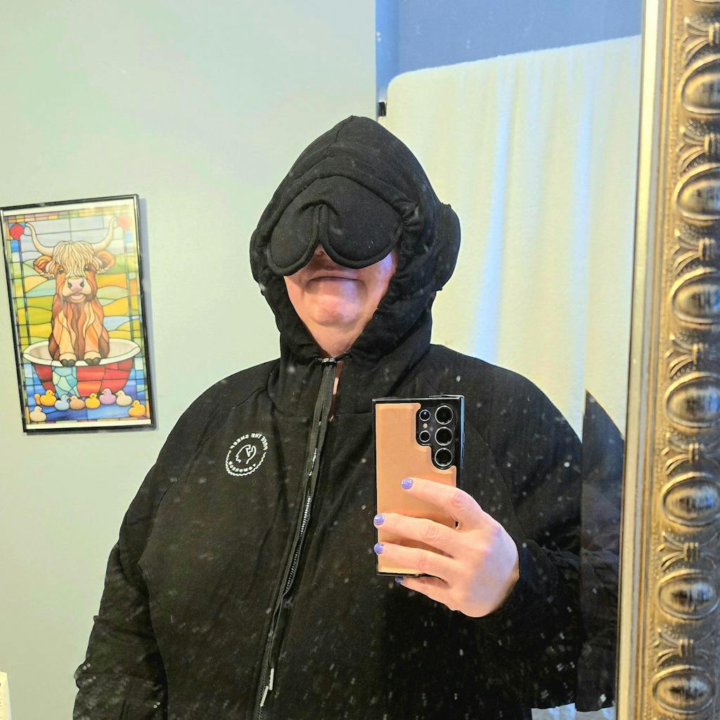 The Tomorrow Hoodie™ is a slightly weighted hoodie designed to help you tune out the world wherever you go. With a built-in eye-mask and ear pillows, it lets you escape into total relaxation, whether you're traveling or just winding down after a tough day.